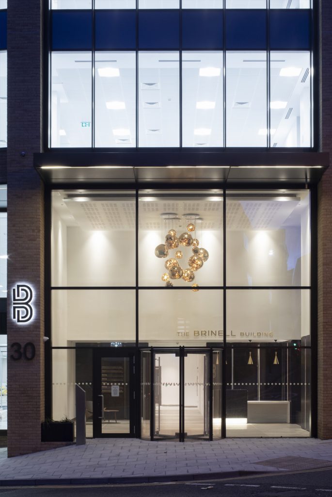 The building achieved a BREEAM Excellent rating, an A rate EPC and benefits from superior energy efficient systems which minimise occupier running costs. The open plan floor plates maximise efficiency with the clear glass full height panelling offering natural daylight and the impressive double height reception incorporates Tom Dixon pebble lighting. To achieve this thermal performance, fabricator Alucraft Projects used Metal Technology’s System 17 – 50mm capped curtain walling and System 5-20D Thermal doors.